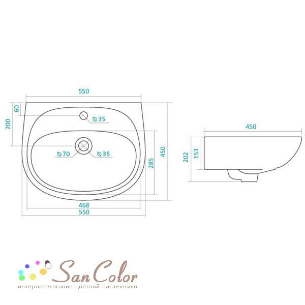 Ширина раковины 550 мм